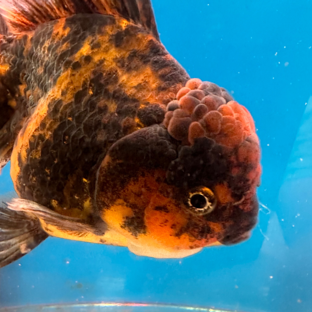 「三色出目金」と「オランダ獅子頭」の交配により作出された。