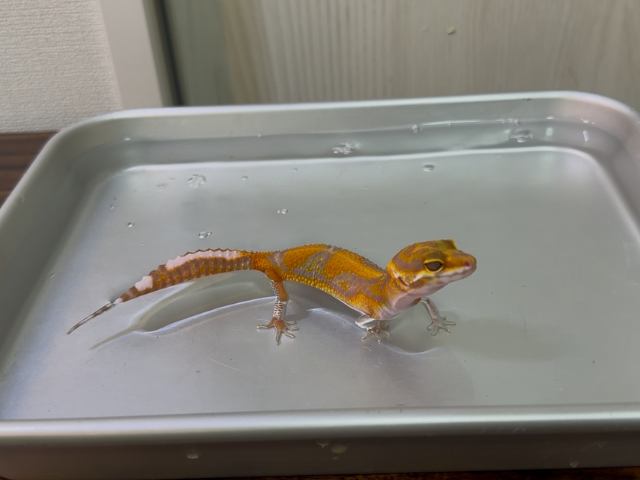【レオパードゲッコーの温浴のやり方】身体に水分が残らないように