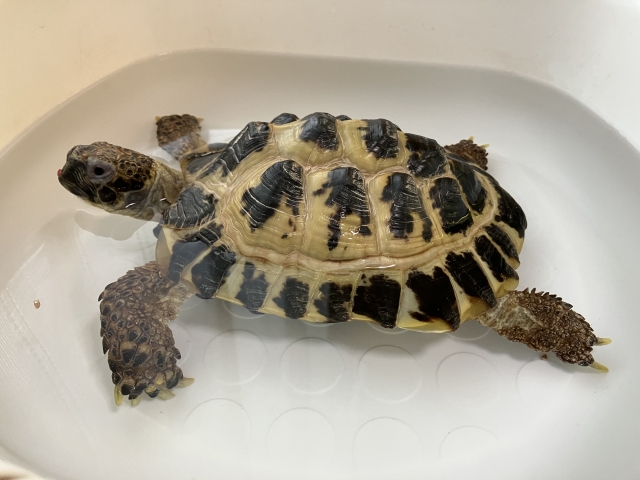 リクガメが日陰に移動できる環境で短時間、行うようにして下さい。